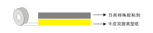 在高密度,均勻光滑的牛皮紙上,涂與高性能的壓敏膠(丙烯酸膠粘劑或橡膠型膠粘劑),涂布厚度精度達到±1um。具有優異的粘貼性。